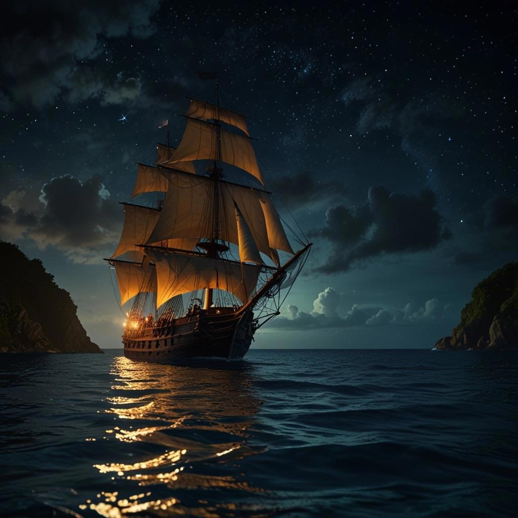 лишь редкие огни Бриджтауна мерцали в ночной мгле. Корабль укрылся