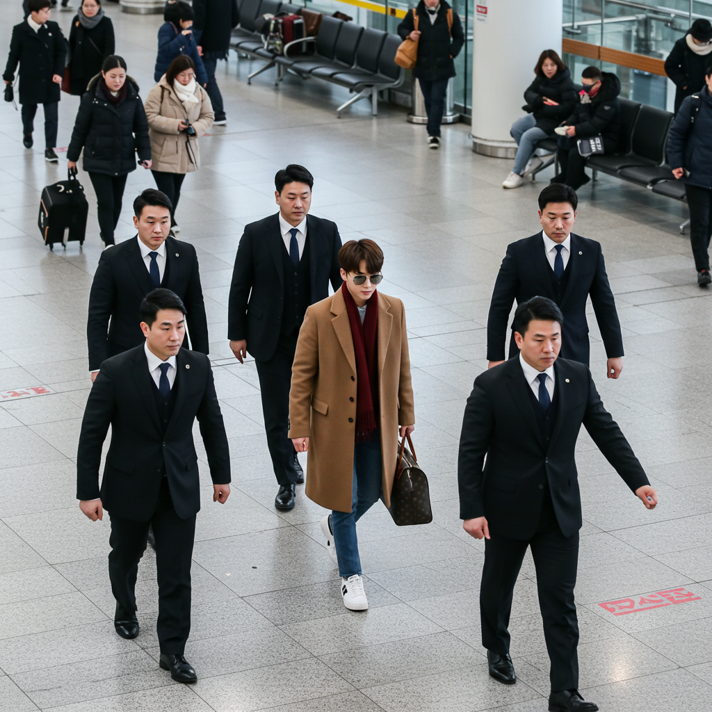 аэропорт Инчхон в окружении телохранителей.