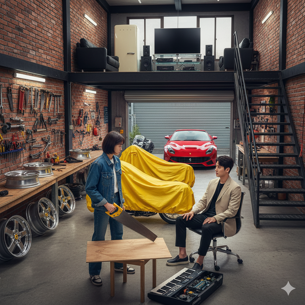 понадобилась пила и фанера. Чжу Вон пригласил Юн Ми в свой гараж и