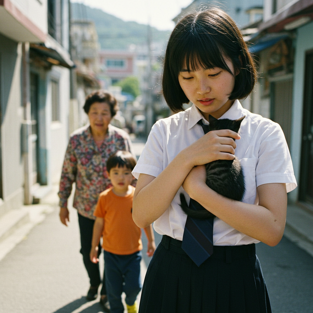 Сюжет: Юн Ми спасает котенка.